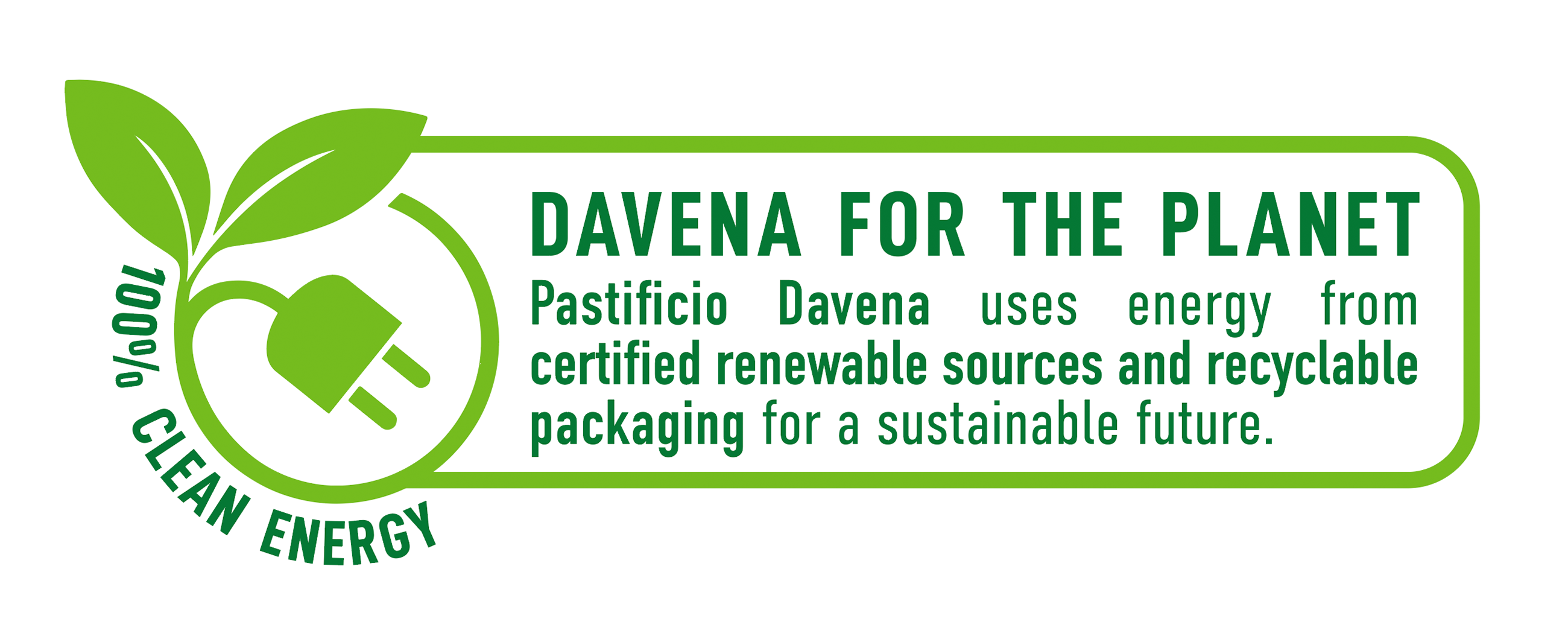 Pastificio Davena uses energy from certified renewable sources and recyclable packaging for a sustainable future.